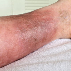Stasis dermatitis is a type of eczema that develops on the lower legs as a result of poor circulation. In affected people, the valves in the deep leg veins that help push blood back to the heart begin to fail, leading to the leakage of fluid, varicose veins, and subsequent swelling of the lower legs.