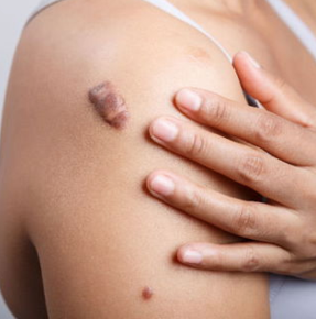 Keloids are thick, firm, hard growths due to excessive scar tissue formation. They differ from ordinary scars and hypertrophic scars in that the scar tissue extends and spreads beyond the original wound margin. Rarely, these growths can occur spontaneously, even without any preceding skin injury. Keloids